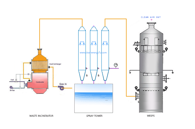 별도 에너지 비용없이 완전연소로 운전하며, 소각로와 스프레이 타워, 먼지(연기)